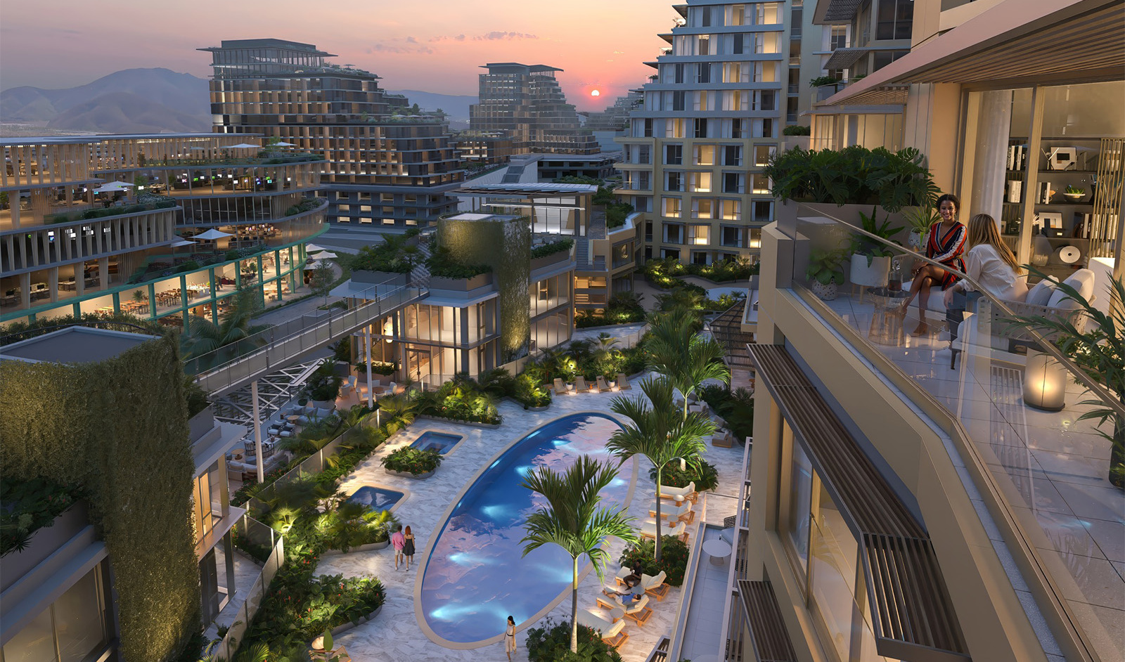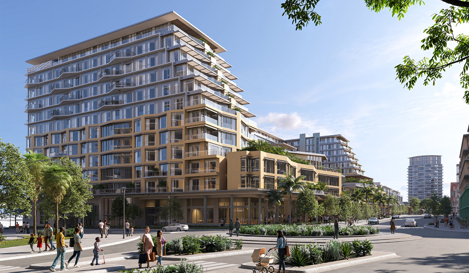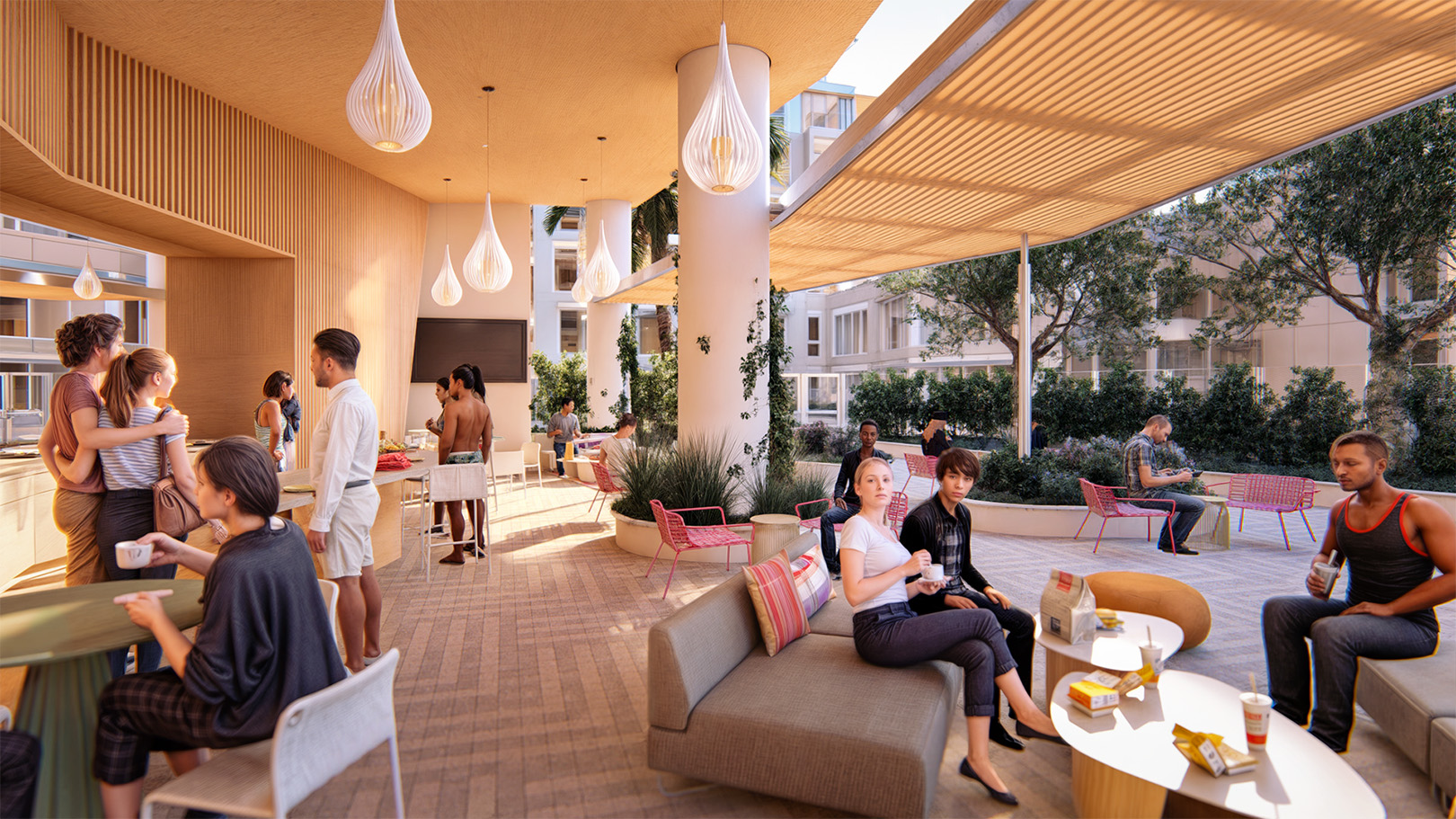 A pedestrian paseo connects the community to a variety of indoor and outdoor food and beverage retail offerings, further accommodating a robust and health-centered micro-village experience.