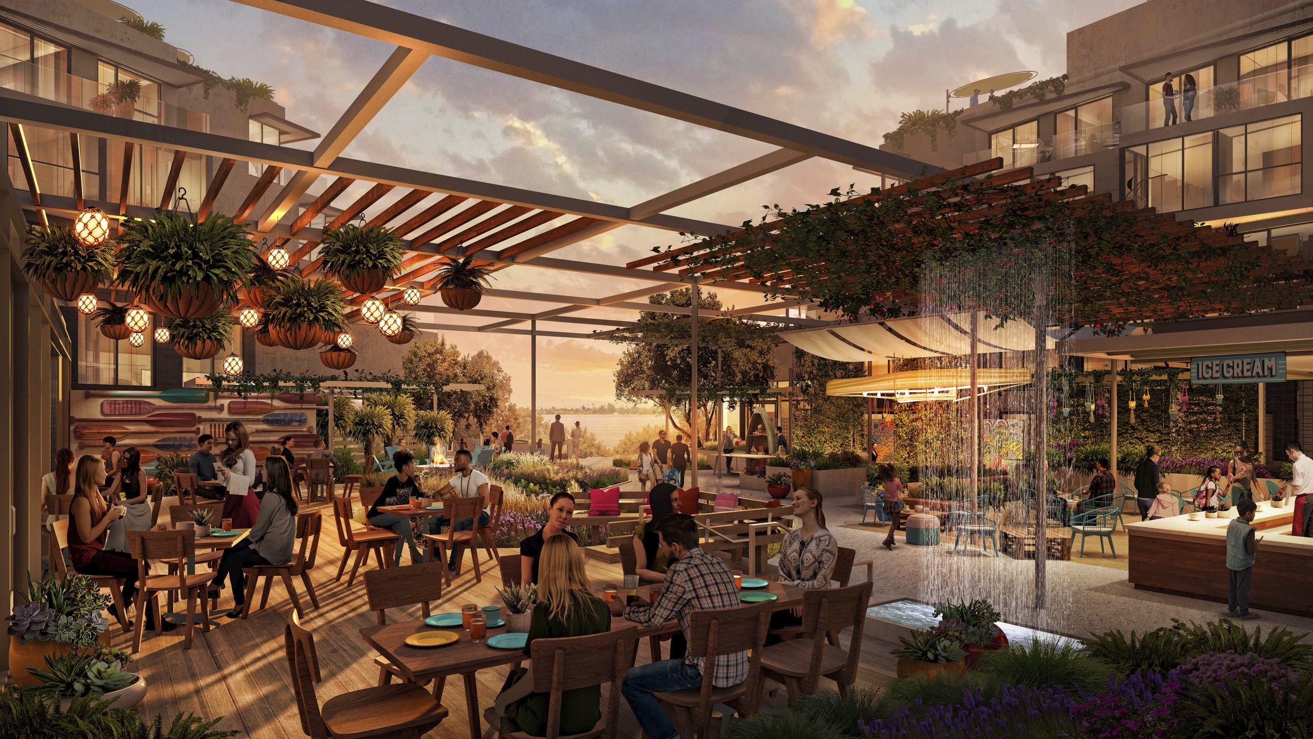 Bayview Plaza is a transit-oriented development that welcomes residents, visitors, and the surrounding Bay Park community. This mixed-use project takes inspiration from the neighboring canyons and serves as a link that connects the surrounding neighborhoods to Mission Bay.