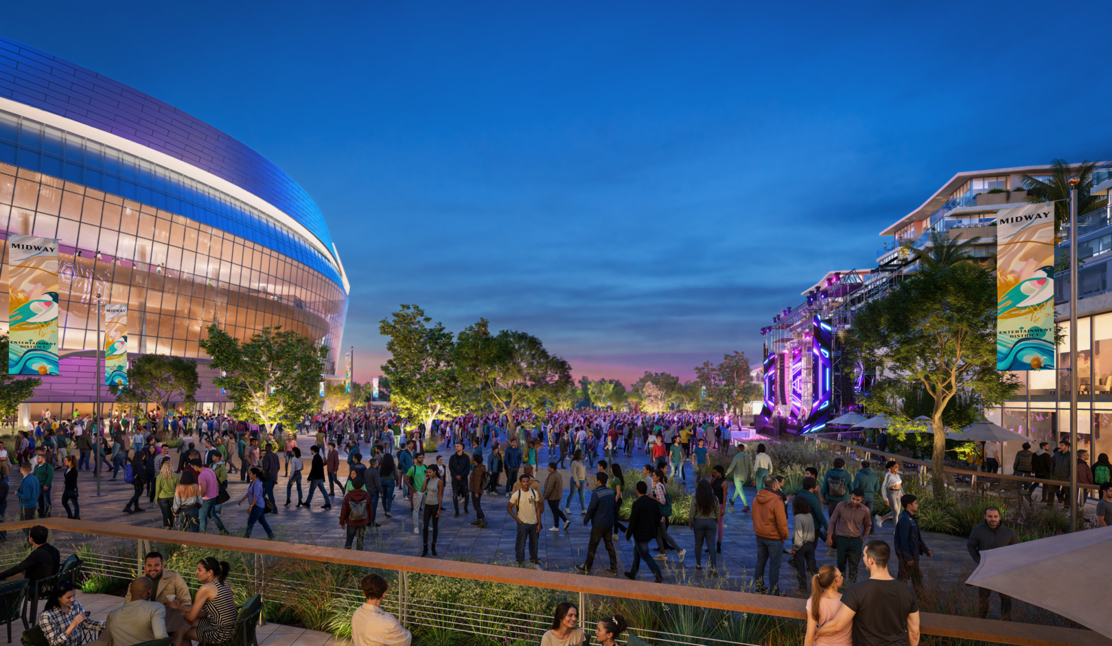 Midway Rising is a master plan proposal to revitalize surplus land in San Diego’s Sports Arena neighborhood with 4,000 housing units and a 16,000-seat arena. Beyond ample housing and a new arena, the master plan offers the community a vibrant, walkable center. Complete with entertainment, recreation, food, and retail options, this new central hub envisions an outdoor performance venue, open parks, a hotel, and outdoor amenities that celebrate the talent and diversity of San Diego.