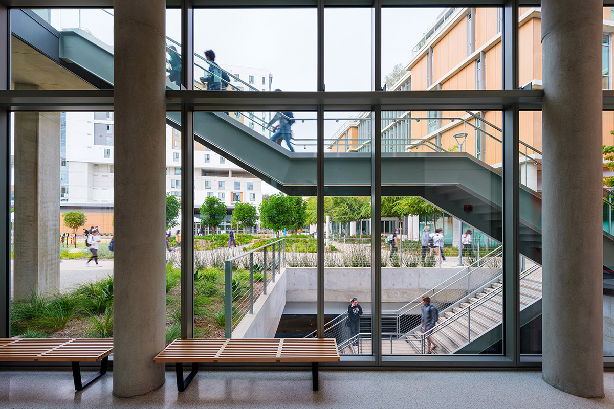 At 14,036 SF and 600 seats, The Jeannie is the largest lecture hall on the 2,178-acre campus of the University of California, San Diego. Sited at the southwest gateway to the school’s North Torrey Pines Living and Learning Neighborhood (NTPLLN), its cantilevered roof ascends toward the main pedestrian walkway and the center of campus like a beacon, highlighting the new community.