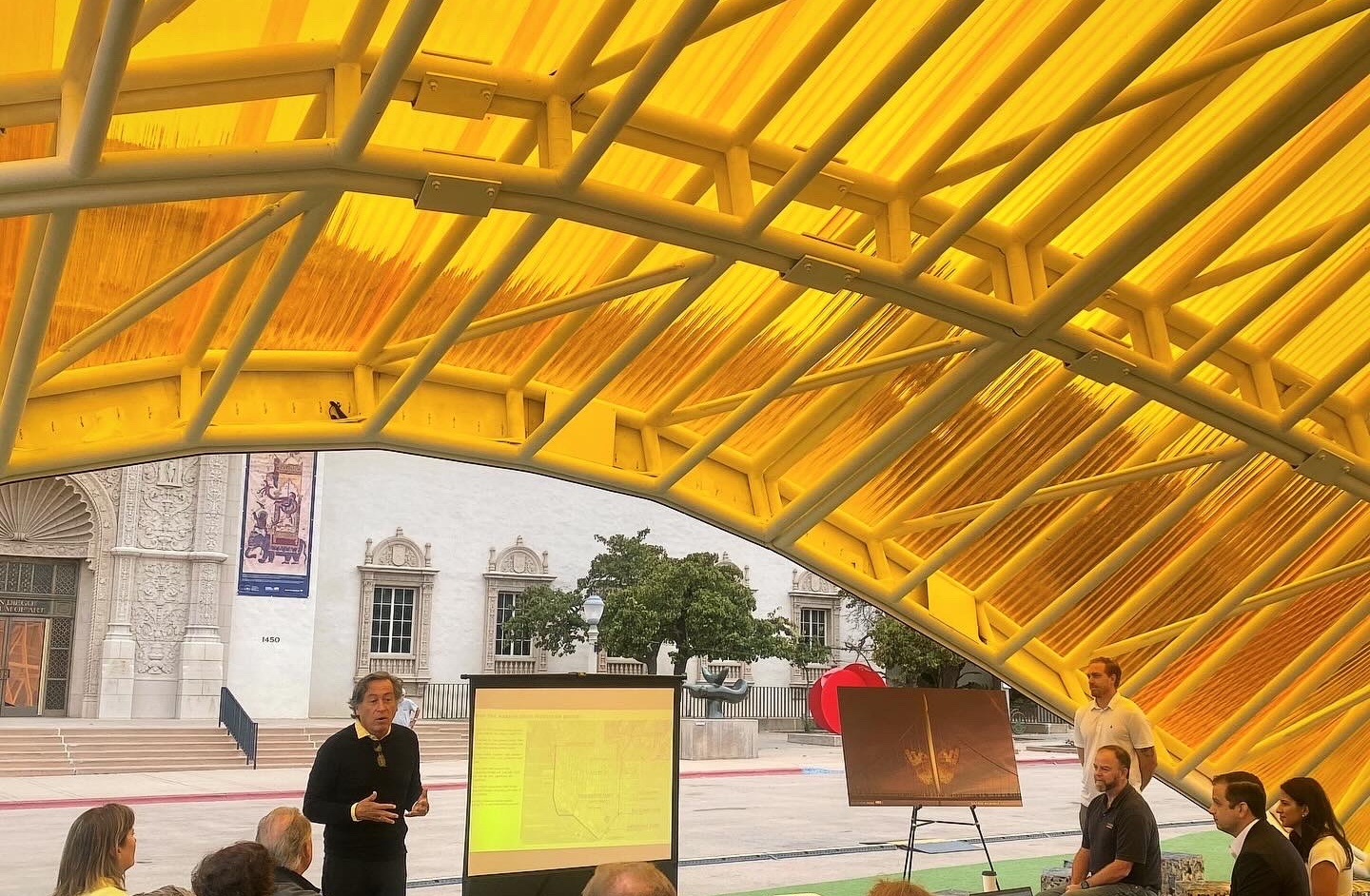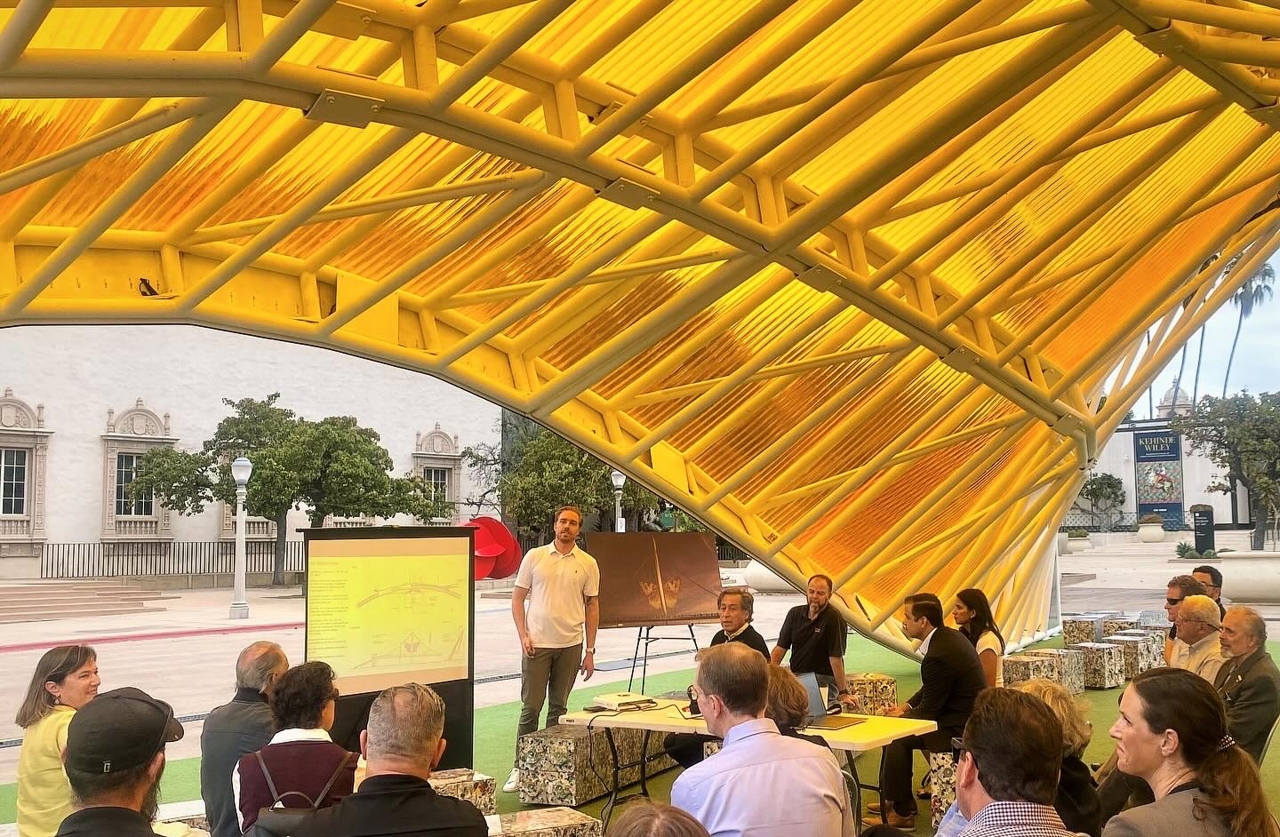 Our team arrived early in the morning to speak under the cover of the World Design Capital San Diego Tijuana 2024 Exchange Pavilion in Balboa Park. This presentation focused on the inspiration and technical details behind the butterfly’s design and its future as public art atop the Harbor Drive Pedestrian Bridge in Downtown San Diego.