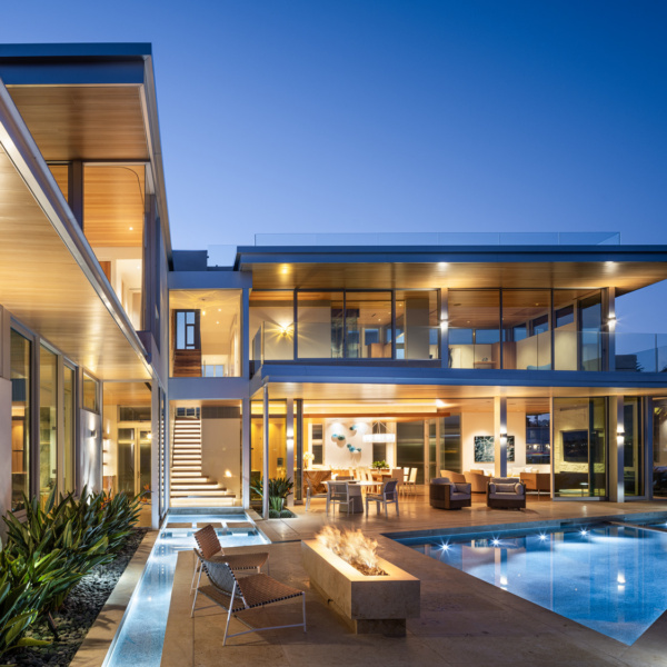 Taking advantage of its steeply sloped site, this single-family home provides panoramic ocean views and extensive outdoor living opportunities. The volume of the house steps back as it climbs the hillside, providing terraces on each level. Large pocketing glass doors … Continued